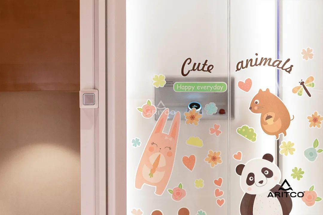 電梯的顏值很高,又好用,我們?nèi)胰硕己芟矚g。我兩個(gè)孫子專門給他們臥室那一層電梯做了“裝修”,貼了他們喜歡的貼畫。
